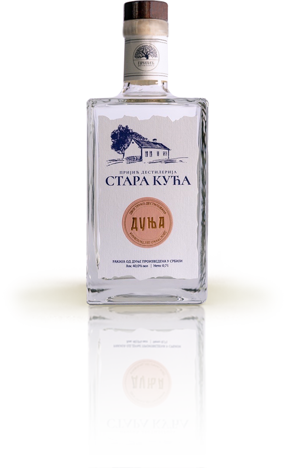 Ракија Дуња Стара kућа произведена је од пажљиво одабраних зрелих плодова домаће шљиве из воћњака у Вишњевцу, у срцу Војводине – региону са богатом традицијом печења ракије. Дуњe се беру у пуној зрелости, пажљиво перу, мељу и подвргавају контролисаној ферментацији како би се сачувала природна арома. Након двоструке дестилације у бакарним казанима, ракија одлежава најмање 5 година у храстовим бурадима.